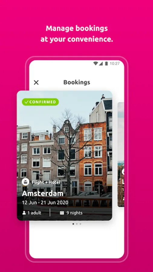 - Once you've found your next holiday destination, you can book directly and keep track of all the booking details.
