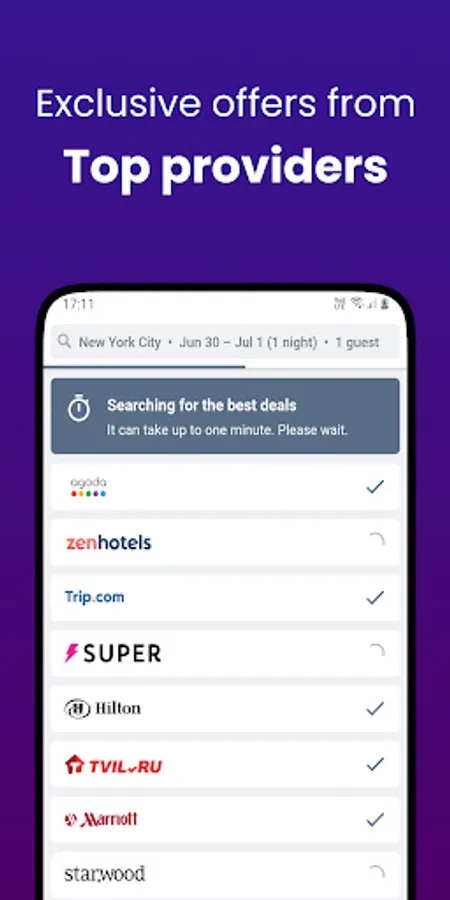 Last minute hotel booking app: We help deliver you the best price comparison result for hotels, and you can book at lastminute time with significant savings on your budget. We compare prices on last minute travel booking sites and vacation providers to find hotel at the lowest price. Our app specializes in Extended stays and motels. Our app contains all major hotel booking companies and hotel chains, and resort networks that work globally. We compare Agoda, Booking com, Priceline, Expedia, Tripadvisor, Orbitz, Hotwire, Hotel tonight, Airbnb, Hotels com, snaptravel, Vrbo vacation rentals, Trivago, and many other hotel engine.