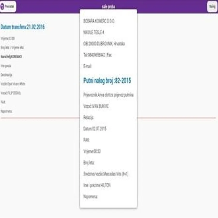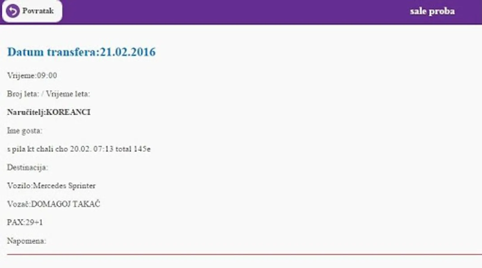 The application allows you to view and transfer information (ALARM) on the transfer of