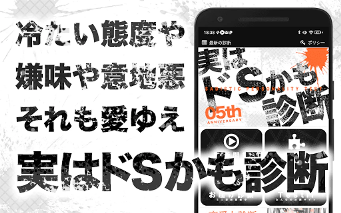 It is a diagnostic game app that measures your S degree just by answering randomly asked questions and psychological tests (^^ ♪