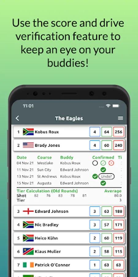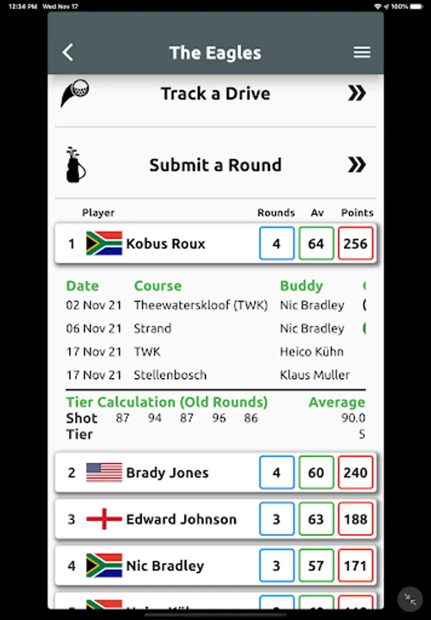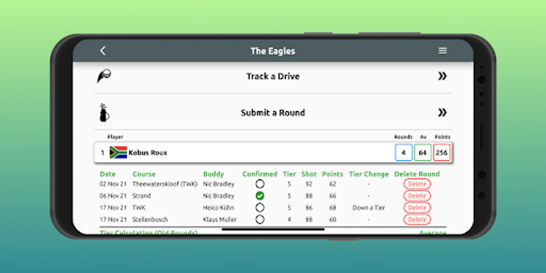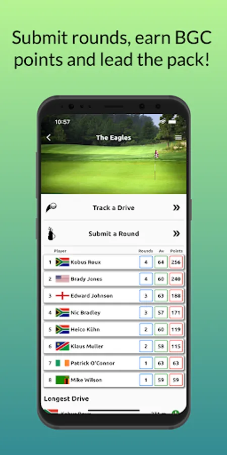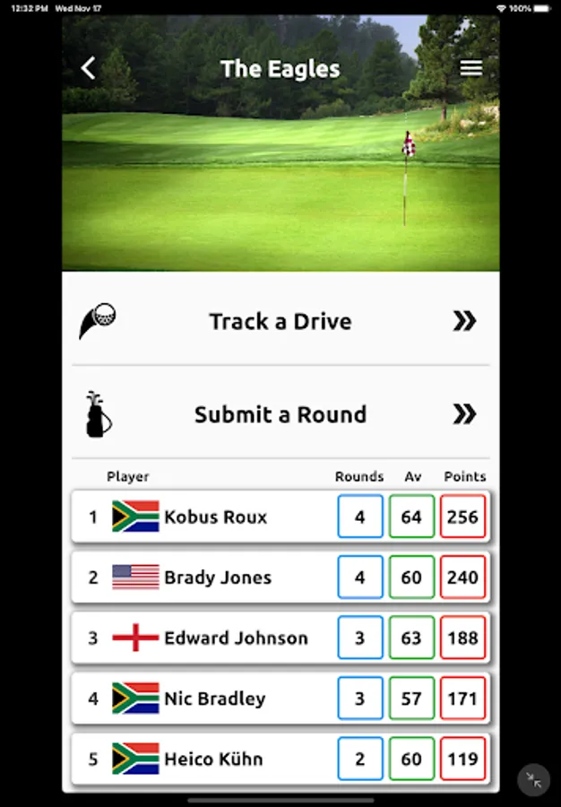 Claim bragging rights by submitting the longest drive in your pool, using the "track drive" function.