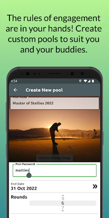 Create and customize your very own golfer profile and tournament pool. You get to call the shots on what scoring system to use, how long you would like your challenge to run for and how many rounds need to be played.
