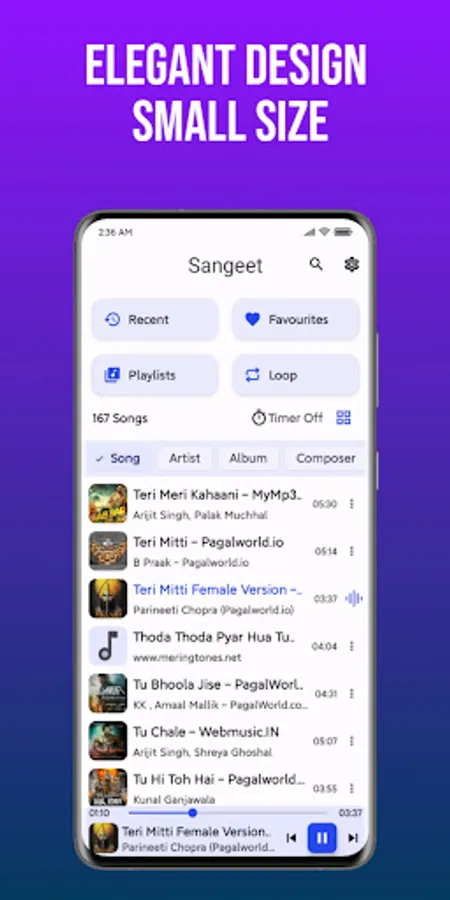 Sangeet: Music Player has a built-in equalizer which brings a great music listening experience.