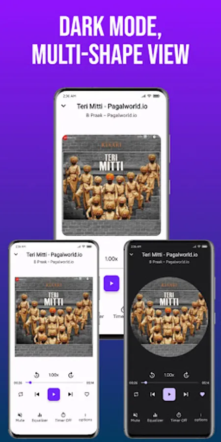 πΌοΈ Image Design: Multiple design shapes for music images. Mainly three options for image shape: (1. Rounded Shape (2. Square and (3. Circular. You can change it from the settings page of this music player app.