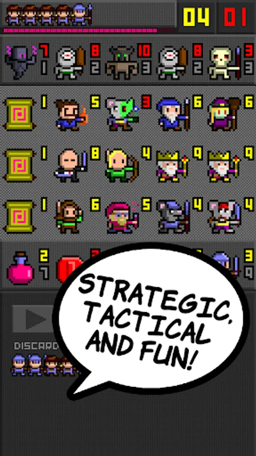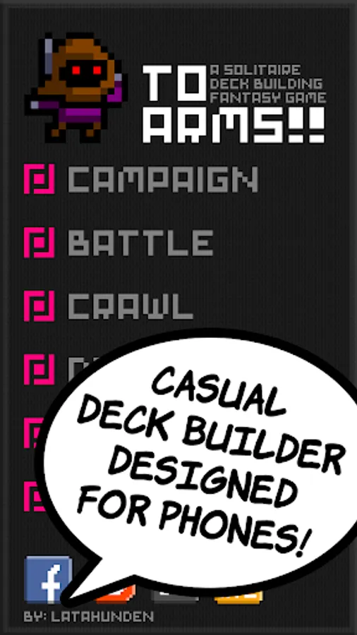 'To Arms!!' is a tiny deck building game with a decent amount of depth inspired by other great card games in the genre. What makes this different is the strict focus on single player and a design that is built to fit the smartphone format.