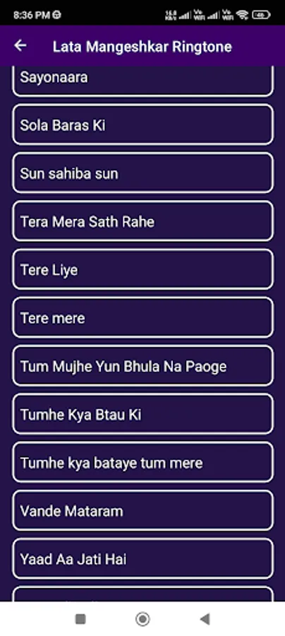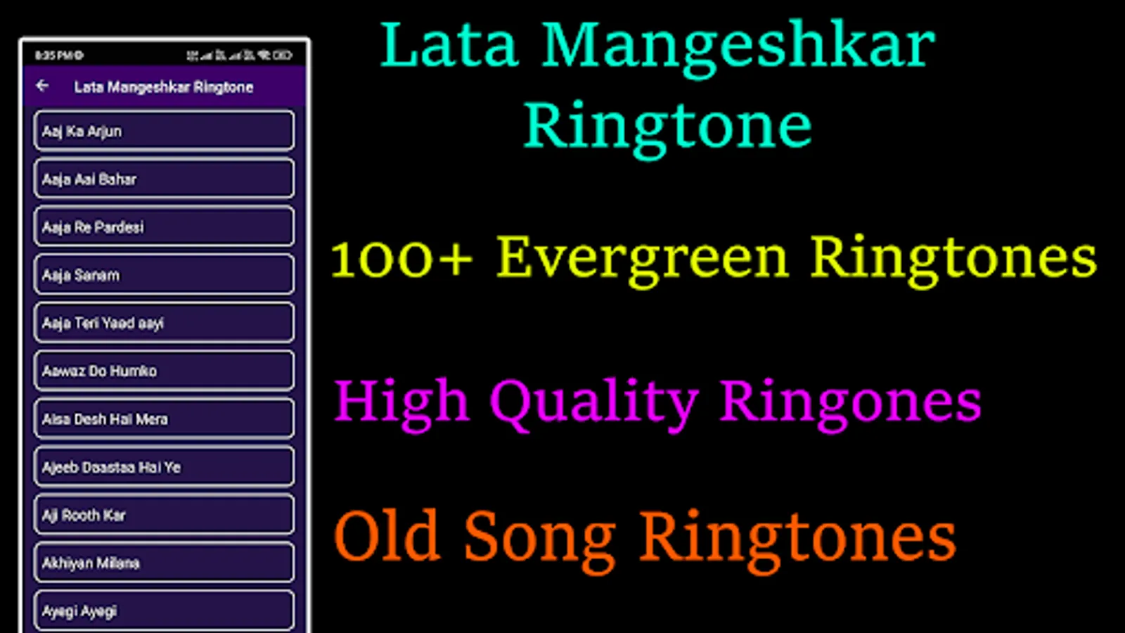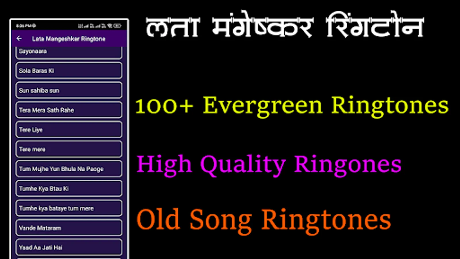 Collection of Lata Mangeshkar Songs ringtones like latest, old, or all type of which you want.