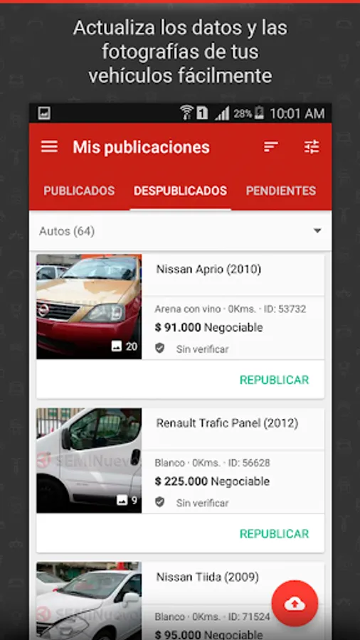 Manage your inventory of vehicles from your smartphone and published in the most effective in your country portal. We are in Mexico, Argentina, Ecuador, Peru, Panama and Bolivia.