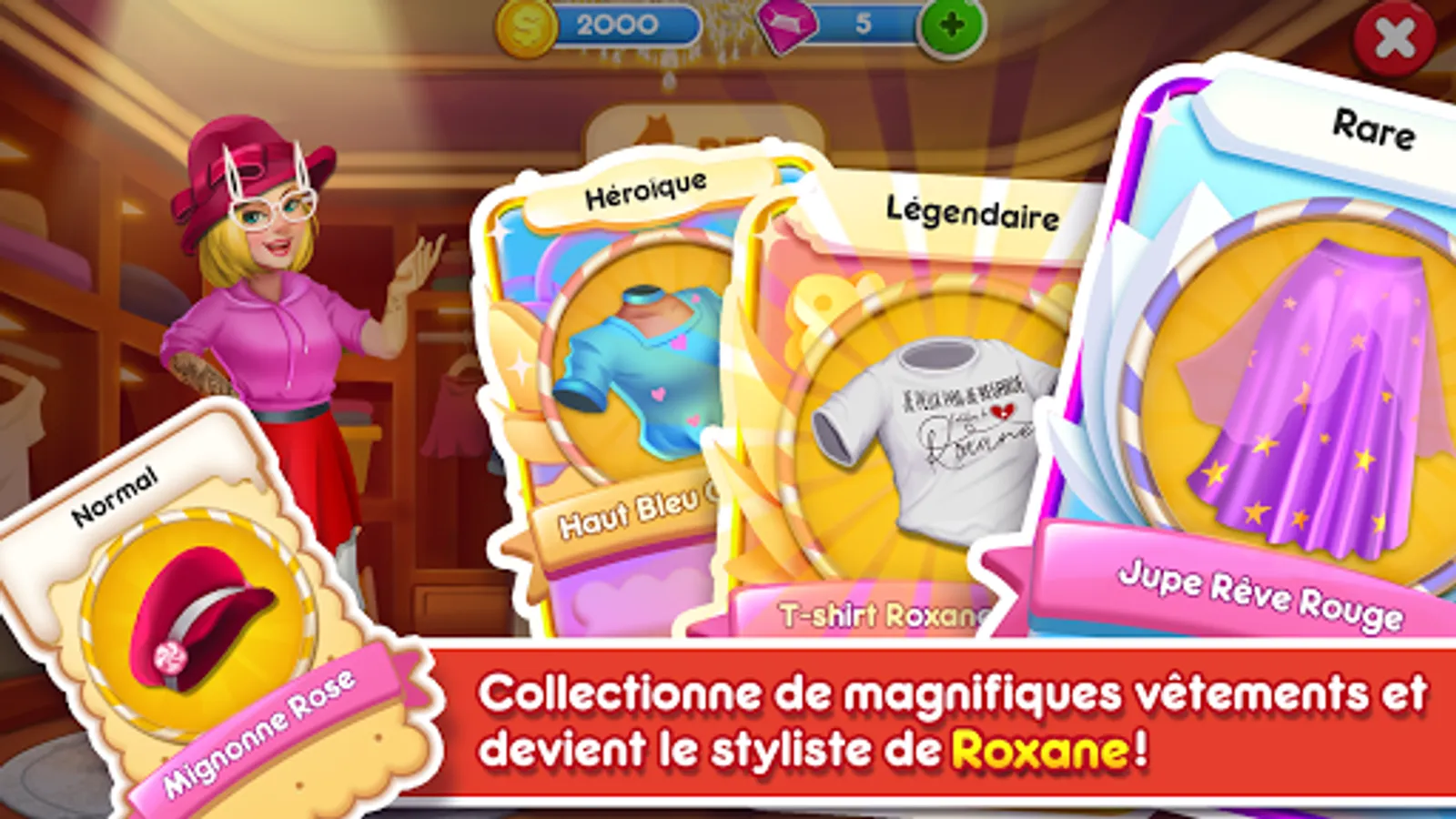Collect cards ๐ from Roxane's workshop, win beautiful clothes ๐ง and become the stylist of your favorite pastry chef. Dress Roxane๐๐๐๐๐๐ฅฟ by tapping into her dressing room, as you wish ...