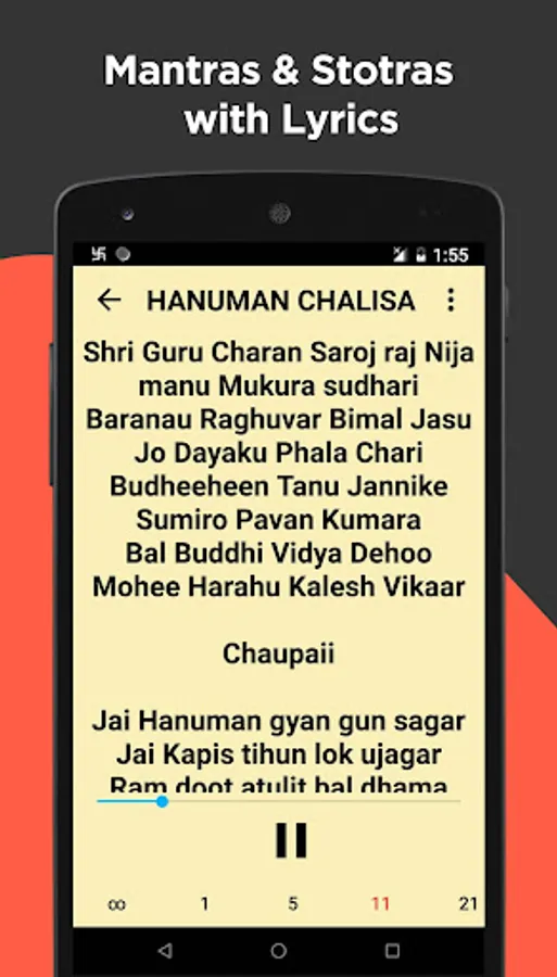 - Play Mantra in background (Listen to Mantra while doing any other work on mobile)