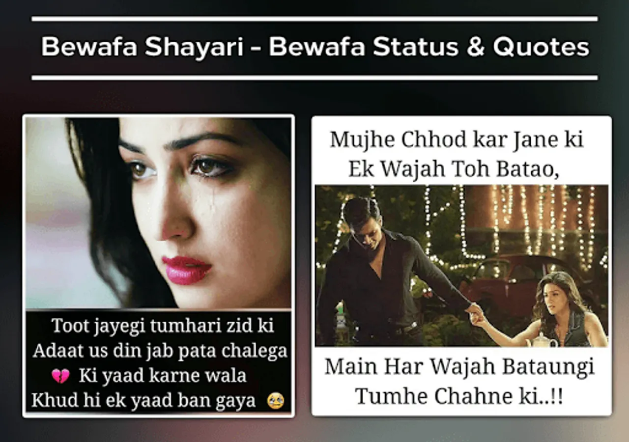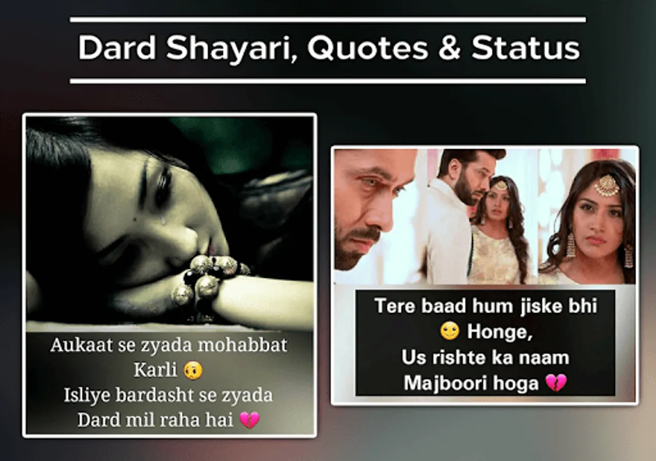 This is one of the best collection of latest pyar mohaabat, हिन्दी शायरी, प्रेम शायरी, दो लाइन शायरी, Hindi Pyar mohabbat love shayari, Heart Touching Shayari, love shayari app which is totally free.