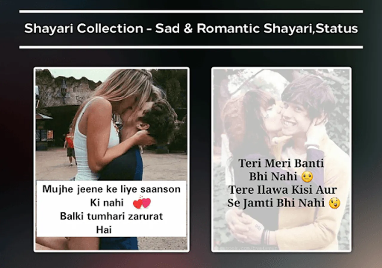 Most exciting feature of this app is "You can share all Status, Shayari text in the form of picture". So you can send picture of Shayari to your lover or anyone.