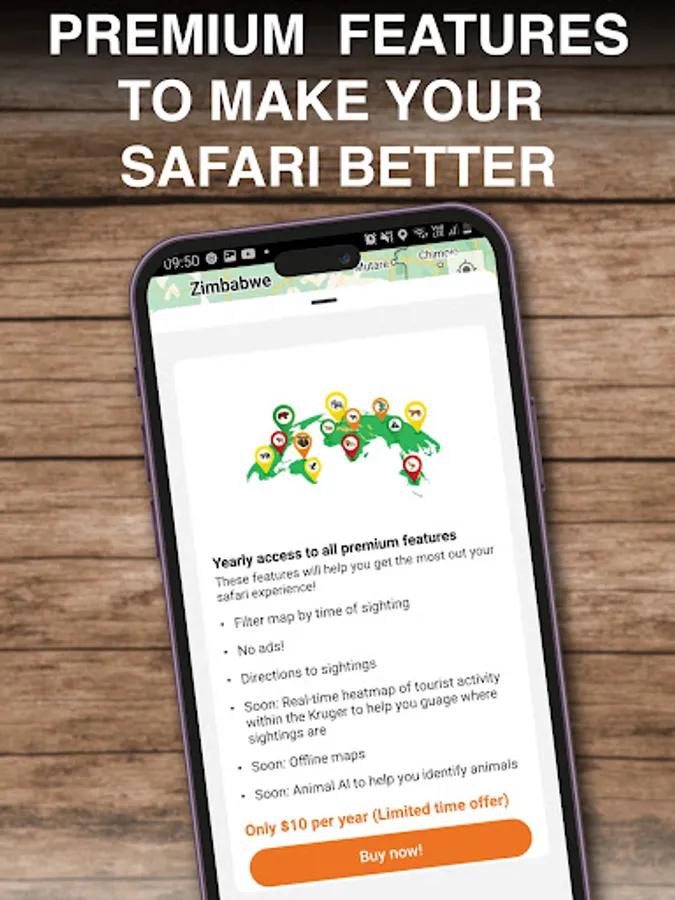The app is a service to visitors on safari. This utility app notifies you of sightings in your area, so that you can go and check them out for yourself in real life.