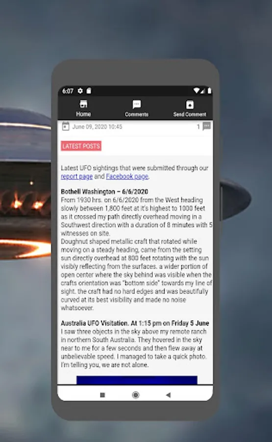 The best Android app for UFO believers. This is app for the latest UFO videos & news from the Latest-UFO-Sightings.net website. All FREE!
