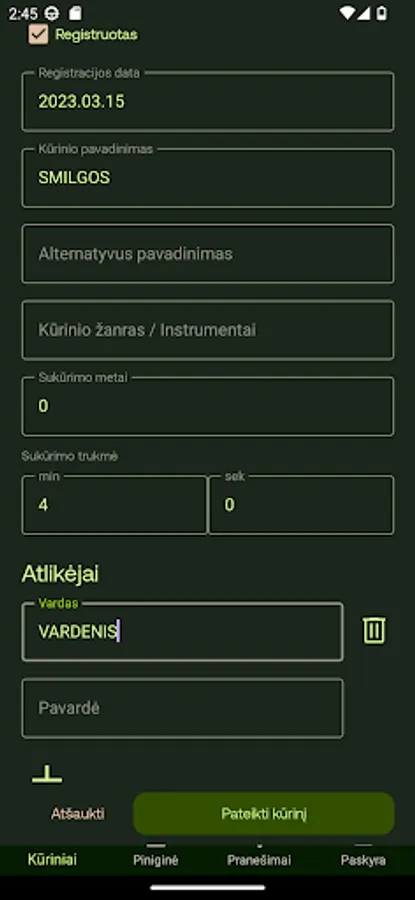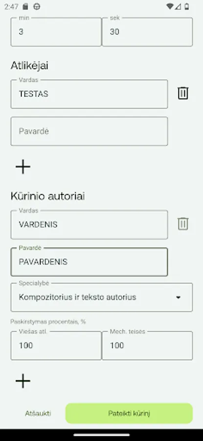 • the amount of remuneration charged to you for the use of works in Lithuania (with taxes)