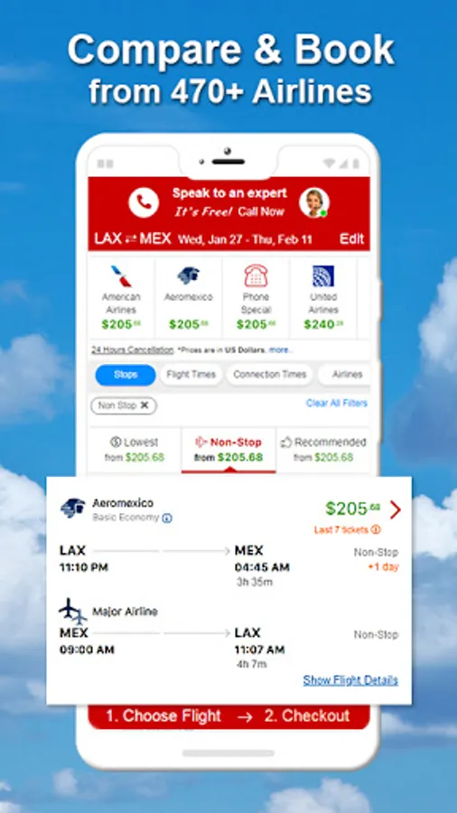 It’s free to call and book plane tickets over the phone with our 200+ flight experts available 24x7x365! Avail big savings on last minutes cheap flights.
