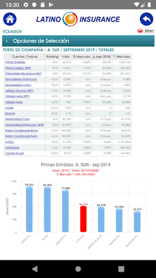 Through this application for mobile devices, our customers can quickly and real time analyze the information of any Insurer in the region from their Android device. The application helps to graphically display the main financial indicators of the selected insurance company against its competitors and the Total Local Insurance Market.