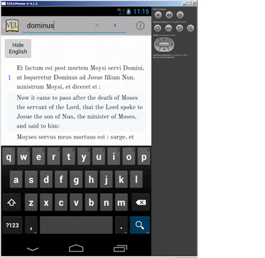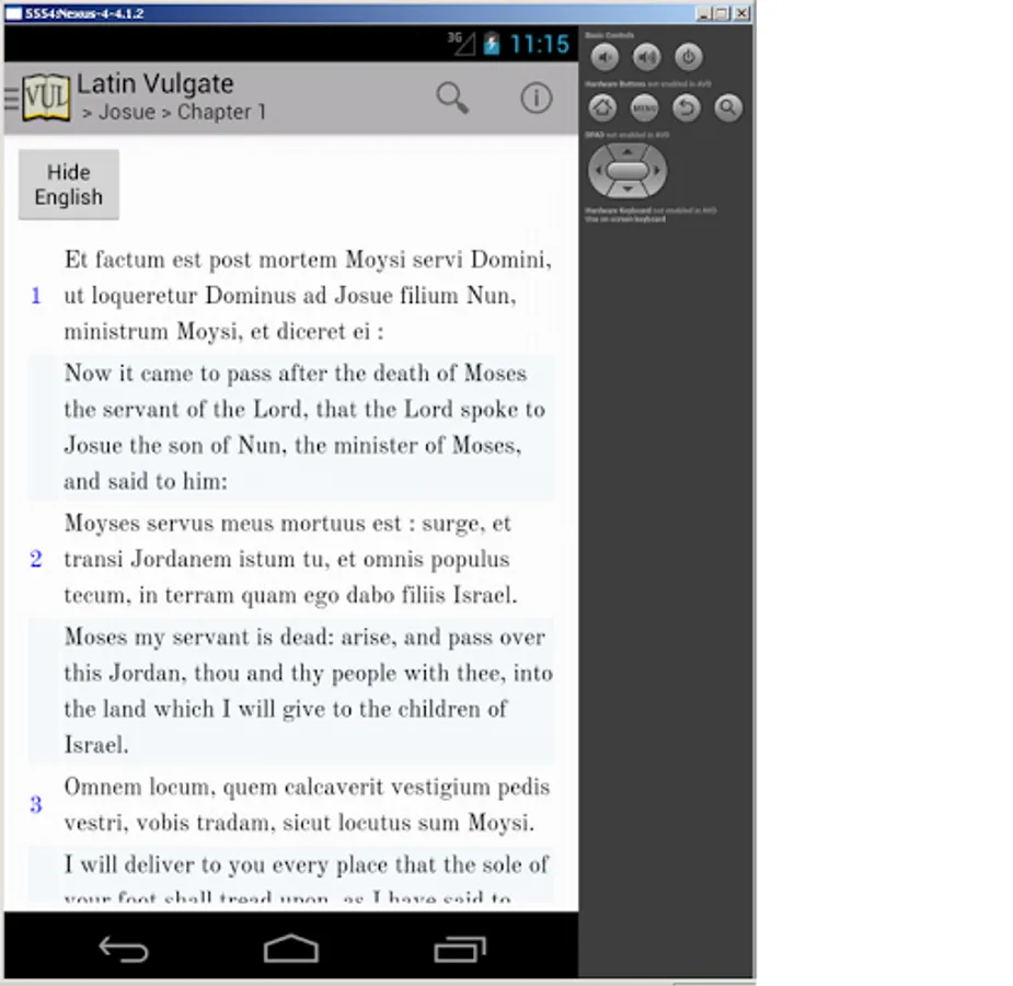 Read the Bible in the 1598 Latin text of the Clementine Vulgate. The Douay-Rheims-Challoner English translation is included (which seems to be conspicuously missing from most other Android bible apps).