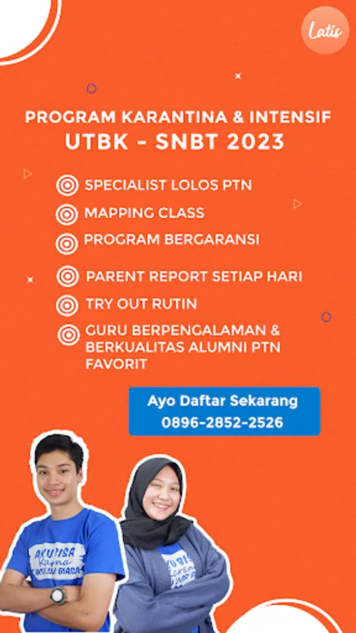 Latis Education is an SBMPTN Specialist Study Guidance Institution which is part of the Company PT. Latis Technology Indonesia.