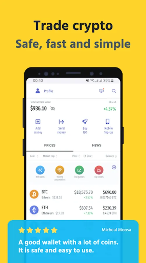 Join us to trade 450+ crypto pairs and get access to the biggest market of tokens in one exchange. Explore the simple and safe way to manage and grow your crypto portfolio directly on your mobile device.