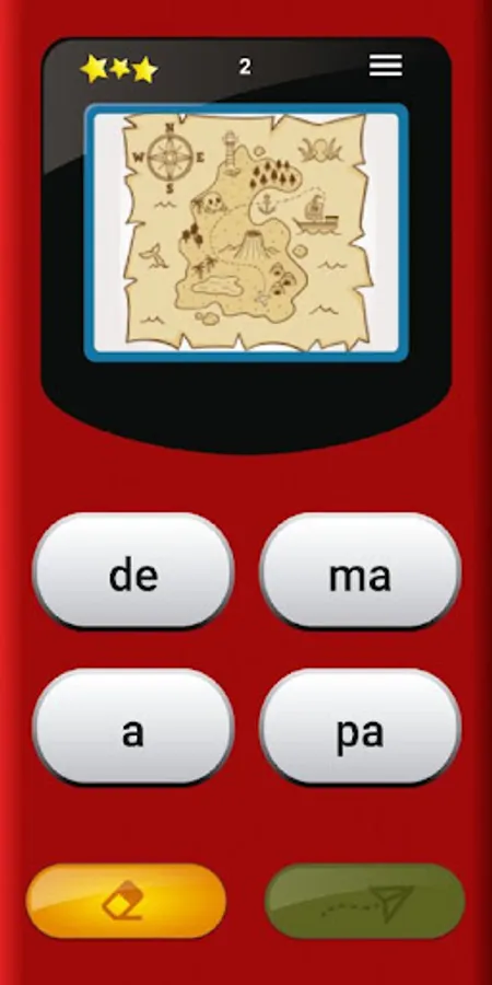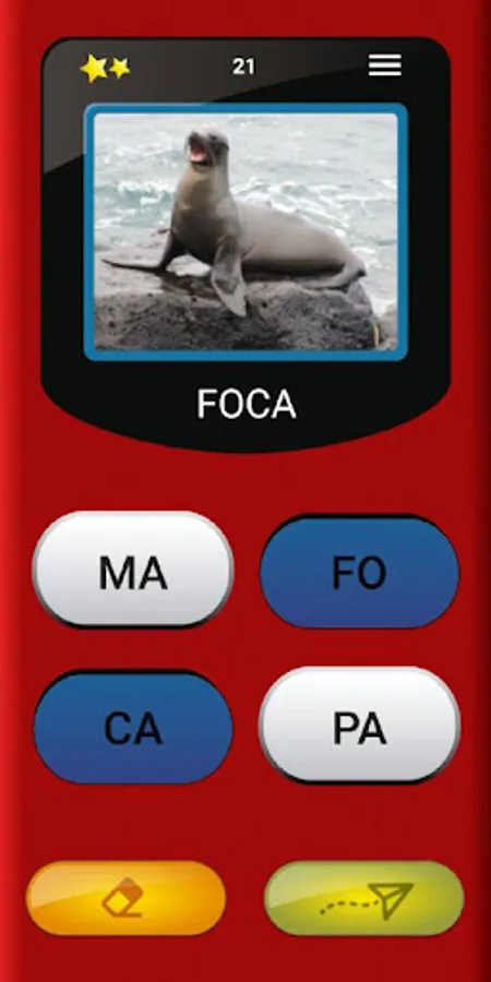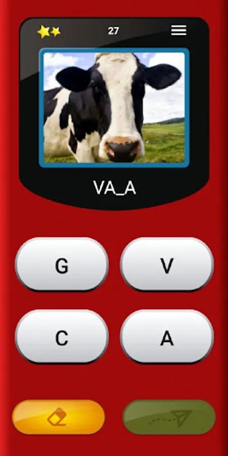 The game consists of completing the missing letter, and/or writing with syllables the word that corresponds to one of the images shown in each turn.