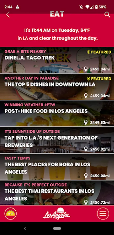 · Find the perfect meal based on weather, time and distance leveraging Discover L.A.'s own custom AI