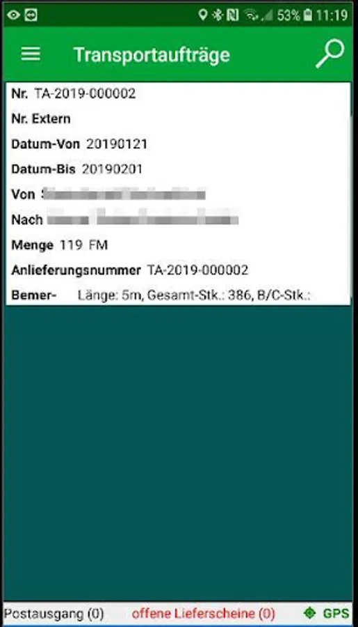 App for creating and sending transport orders and transport delivery notes in FHP format.