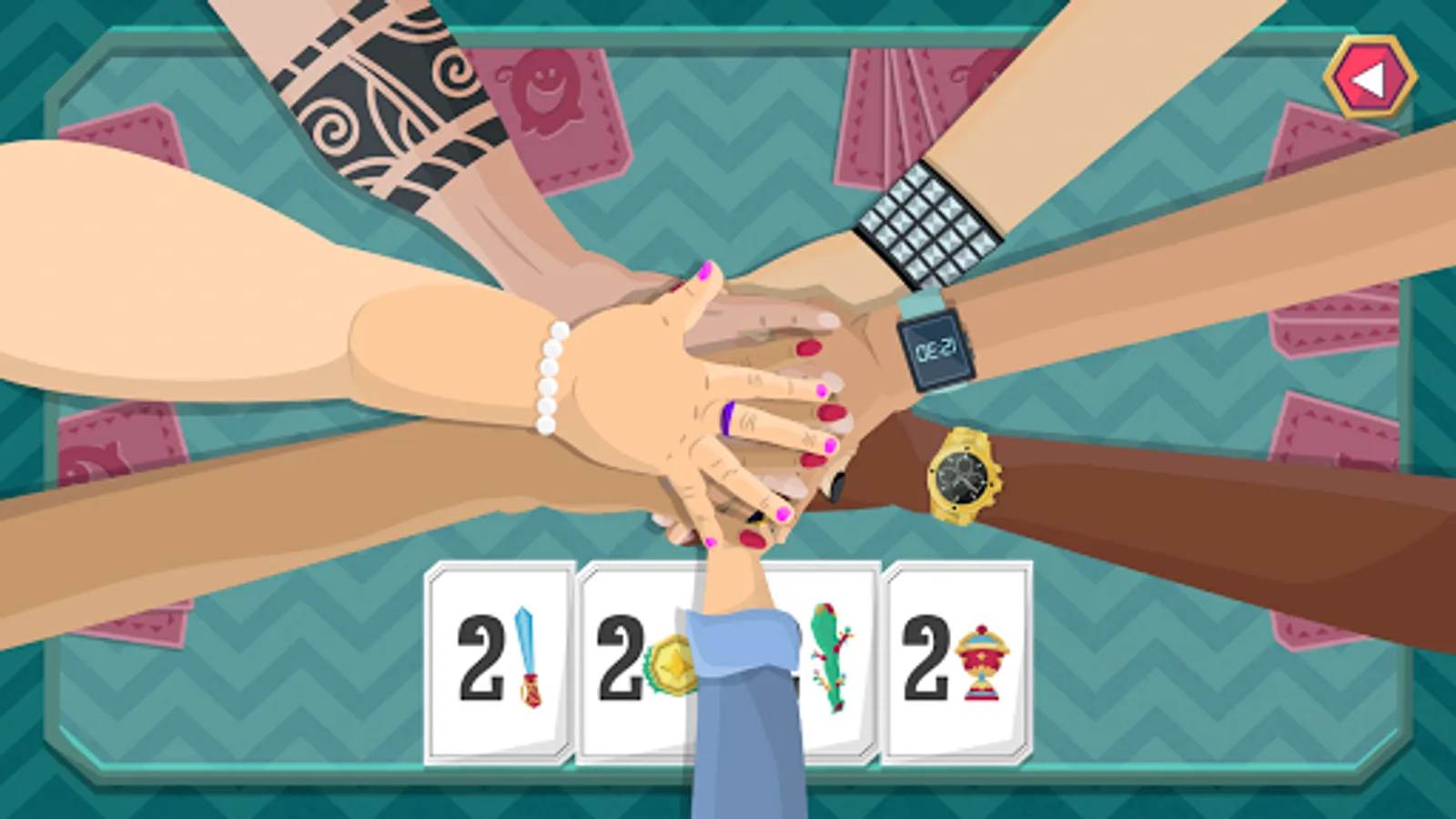 The goal is to collect 4 cards of the same number in hand and touch the center of the table as fast as possible.
