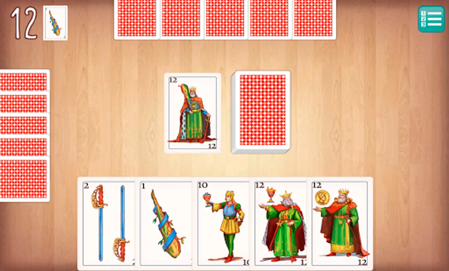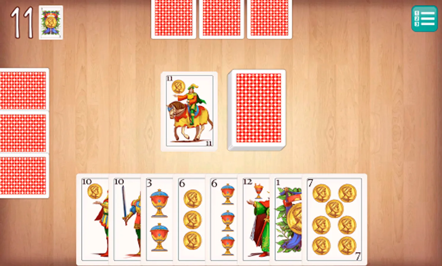 The points to add at the end of each hand are obtained from the cards that the player has not discarded. For example, if at the end of the hand a player has a one and a nine, he adds 10 points to his total points.