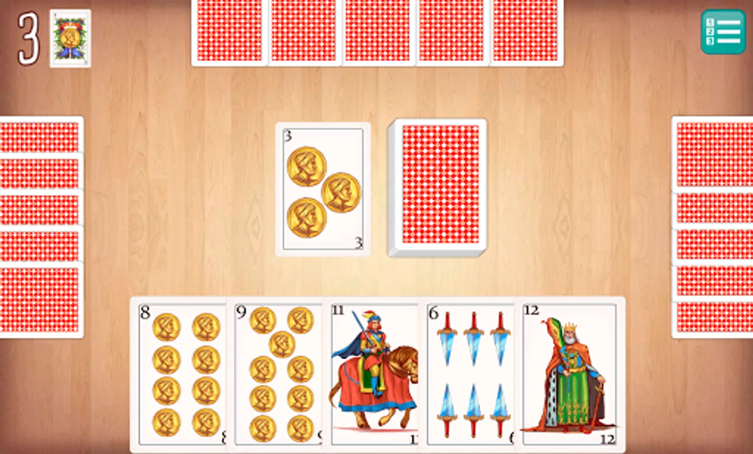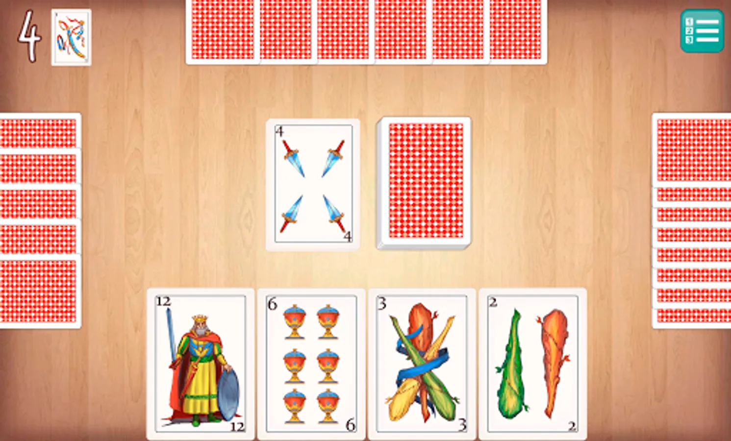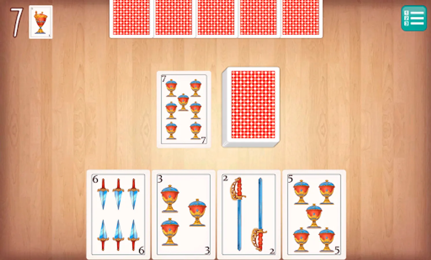 At turns, each player has to play a card on top of the card on the table, of the same suit or number of such card.