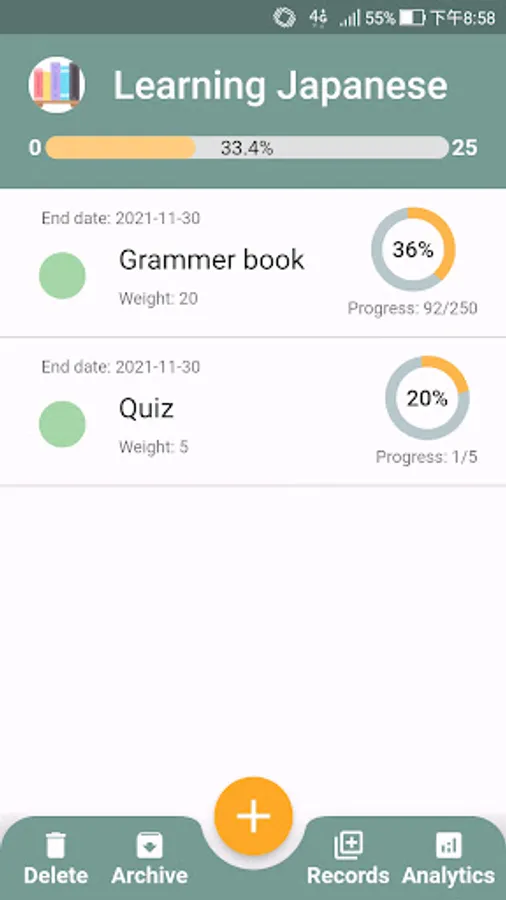 Goal Progress app provides a user friendly interface to help you manage your goal projects. You can create various tasks under the project, and each task has its own progress view. It is easy for you to know the progress of the goal project at a glance.