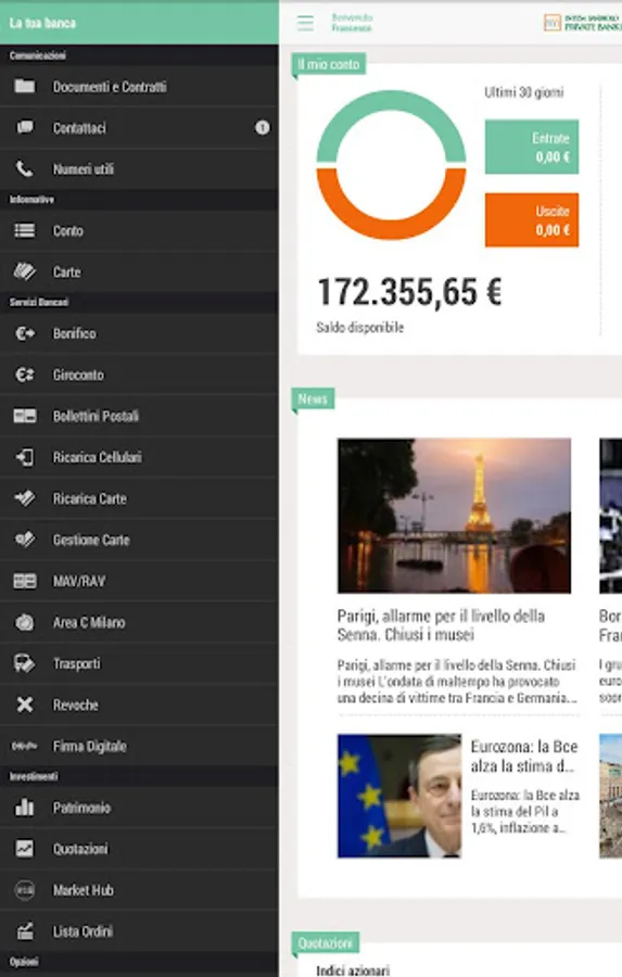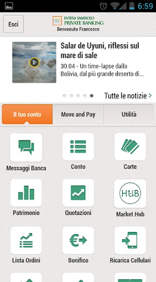 Designed for those who are always on the move, "Intesa Sanpaolo Private" for Android not only offers banking functions, but also offers a menu of useful services and a selection of information channels.