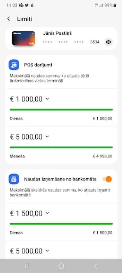 * Iestatiet katrai kartei dienas un mēneša limitus