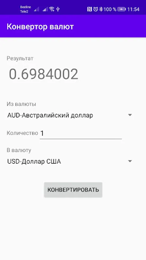The application for converting currencies at the rate of the Central Bank of the Russian Federation