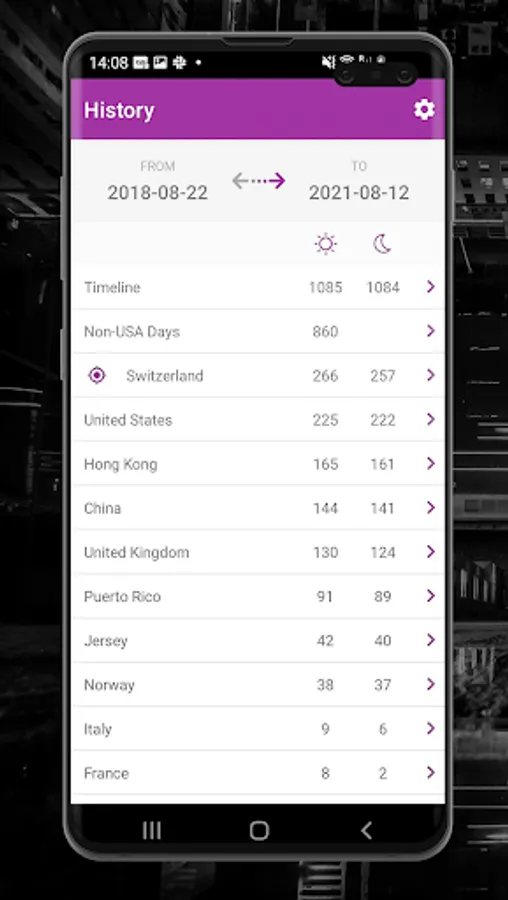Ditch the spreadsheet and count your days and midnights automatically for residency, domicile, visa stays or for work compliance.