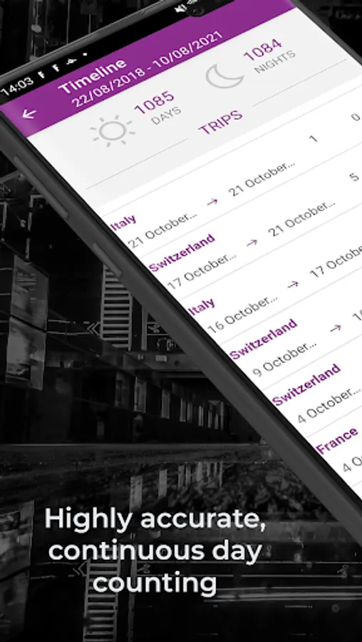 TrackingDays™ is the original, trusted day counting App for people who need to keep a track of the days, (or nights), they spend in different countries.