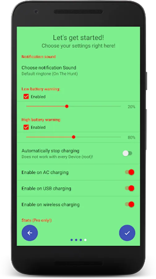 - You are able to toggle the battery warnings for each charging method (ac charging,