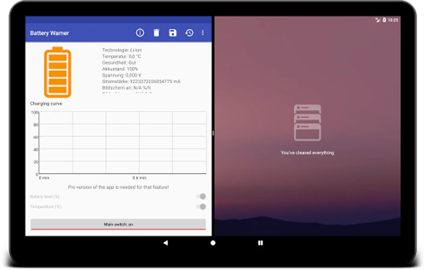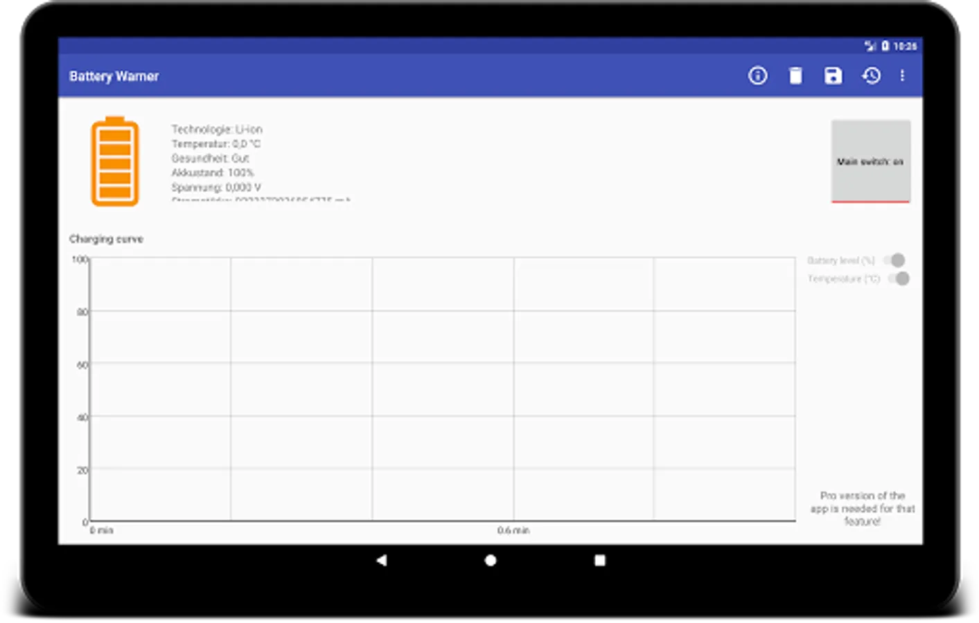 - Creation of a charging graph, so that you see how you have charged and how warm