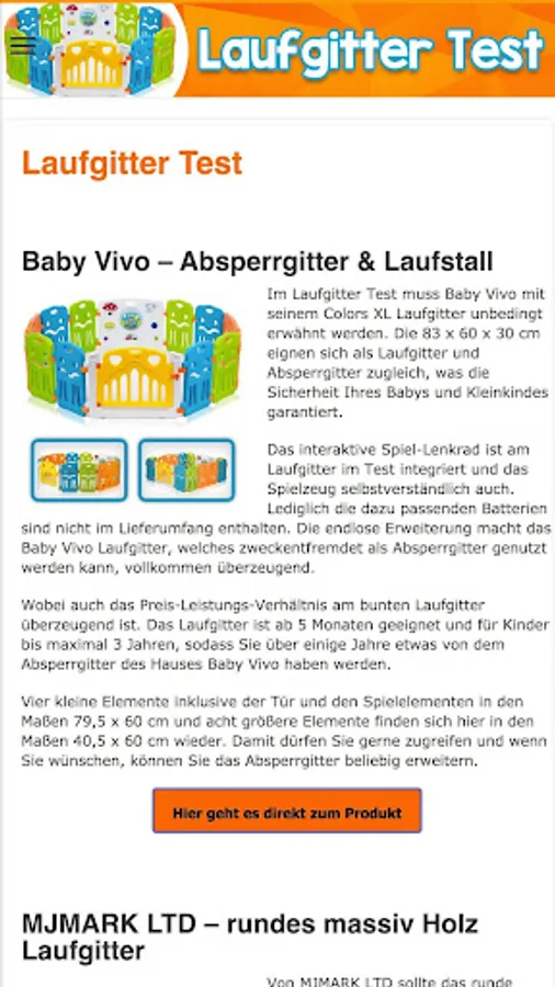 With this app you get all the information you need to know about playpens, including numerous tests.