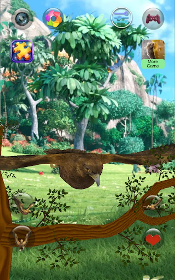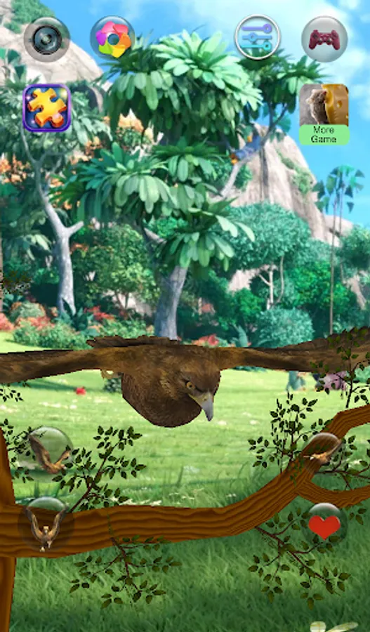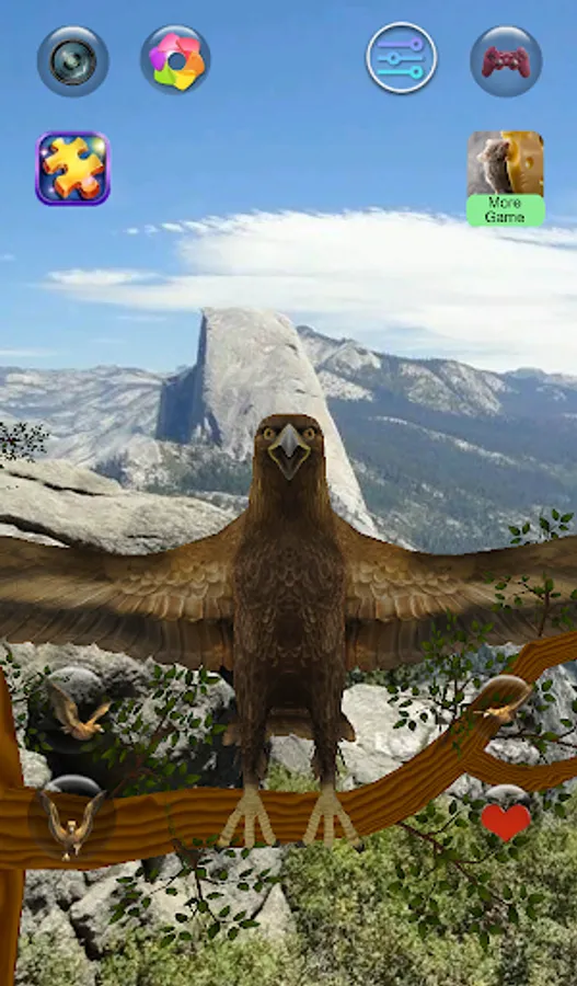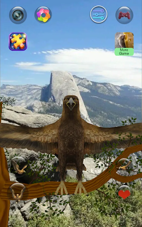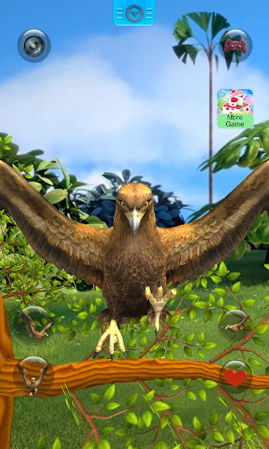 Talk to the Talking Eagle. He answers with his funny voice and reacts to what you say or your touch. Talking eagle flight is also a first-person, simulation game, which tasks players to assume control of an eagle flighting. As the eagle moves forward continuously, its direction is controlled by the player's head movement.