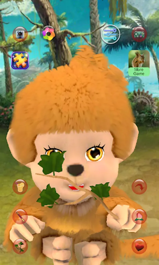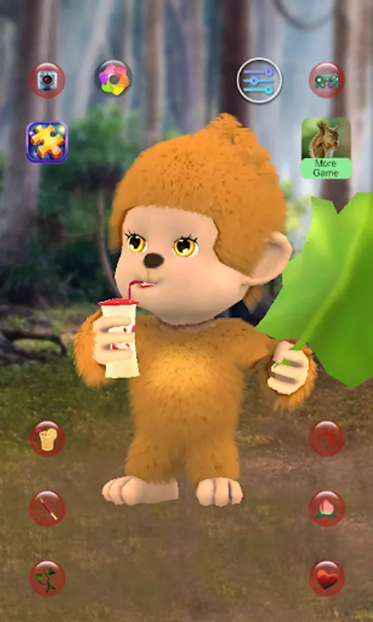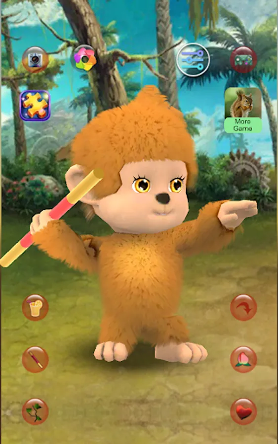Talking cute monkey is an active guy, he wanted to have fun restless like crawling around in the trees, favorite food is peaches and eat peaches, he is the world's happiest monkeys. When he saw the strange things that must be carefully round of study.