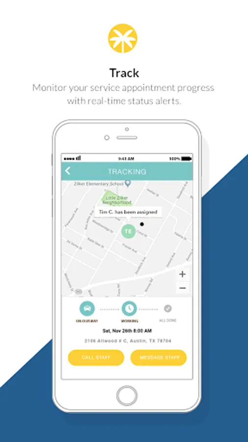 • Get app notifications when we are on our way