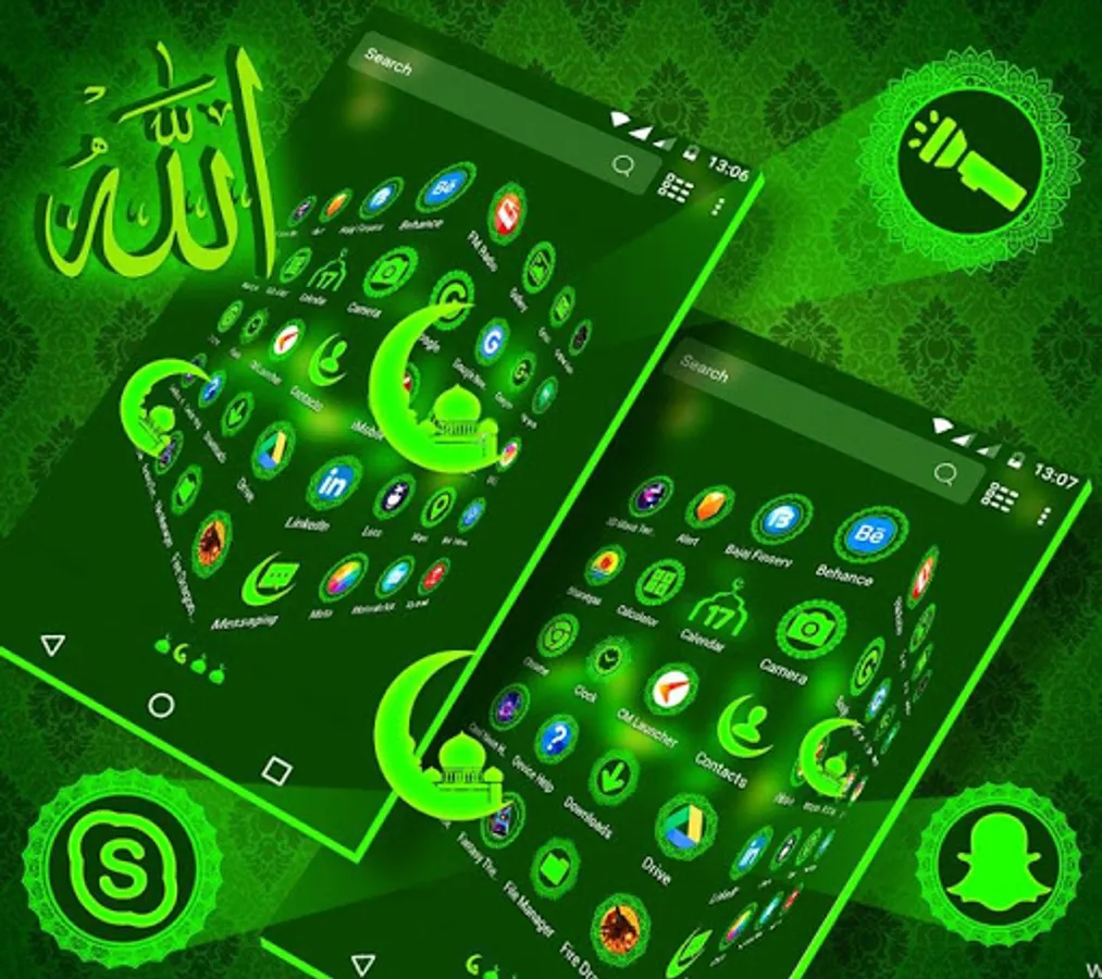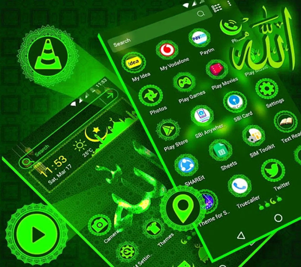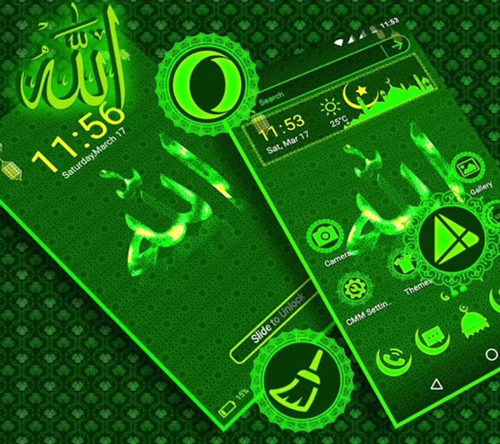 Apply the Allah Launcher Theme now, to make your phone stylish and organized. The original app icons, clock and weather theme of your phone will be replaced by the Allah Launcher Theme.