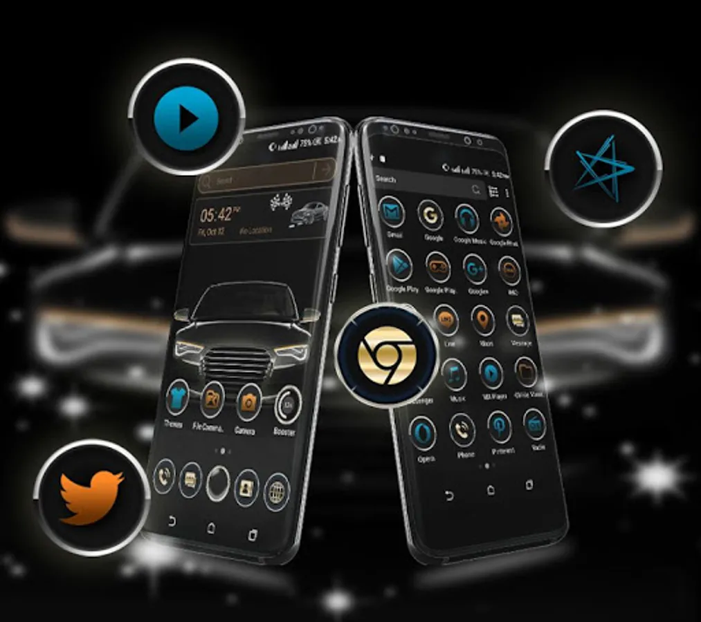 Come and download the Black Car Launcher Theme for free and make your Samsung, Huawei, HTC and any other brands of Android mobile stylish.