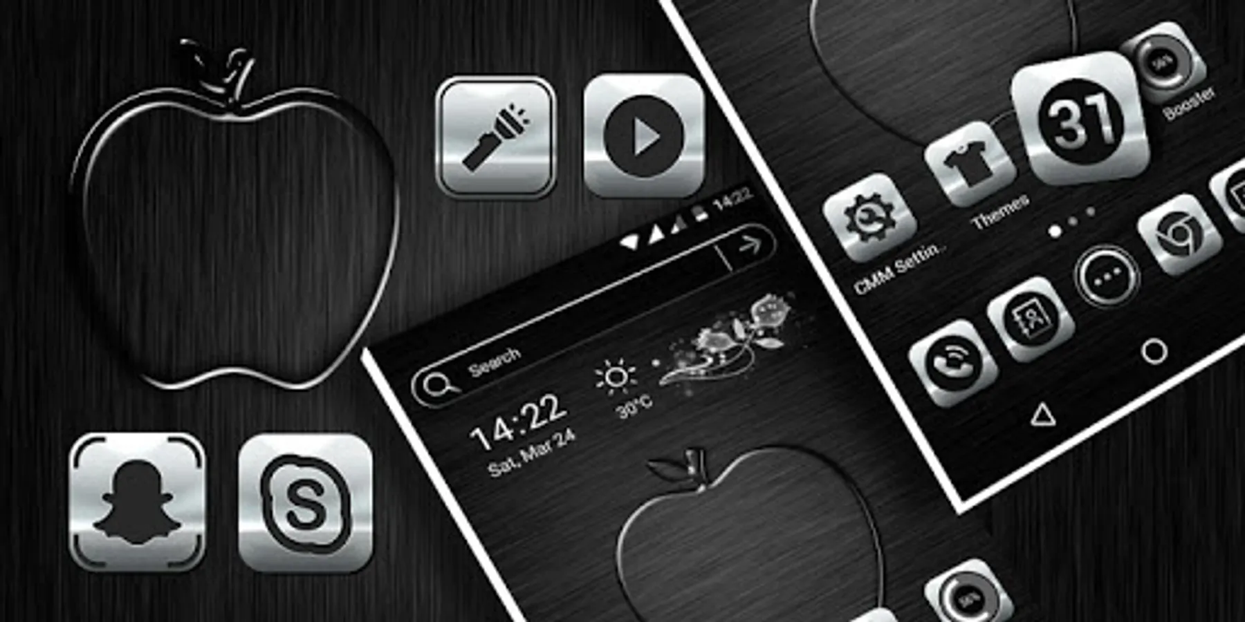 To apply the theme, please install our CMM Launcher first. Apply the Crystal Silver Theme Launcher to make your phone stylish & green natural, orderly and cool. The original app icons, clock and weather theme of your phone will be replaced by the Crystal Silver Launcher Theme. We have designed many customized icons for popular apps, these include camera apps, social apps, entertainment apps, useful tools and messenger apps. Our app also provides you thousands of themes are free and available at Google Play Store. Download and apply Crystal Silver Launcher Theme now! There are more other (Cool Silver, Skull) beautiful themes waiting for you!
