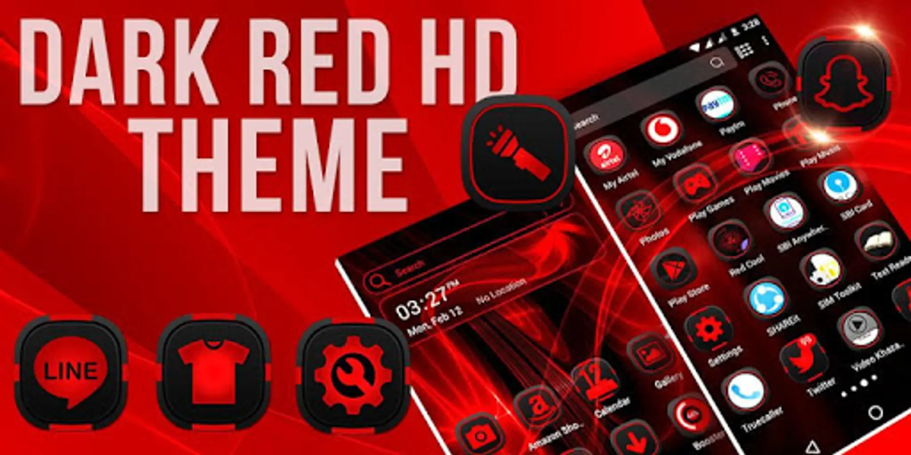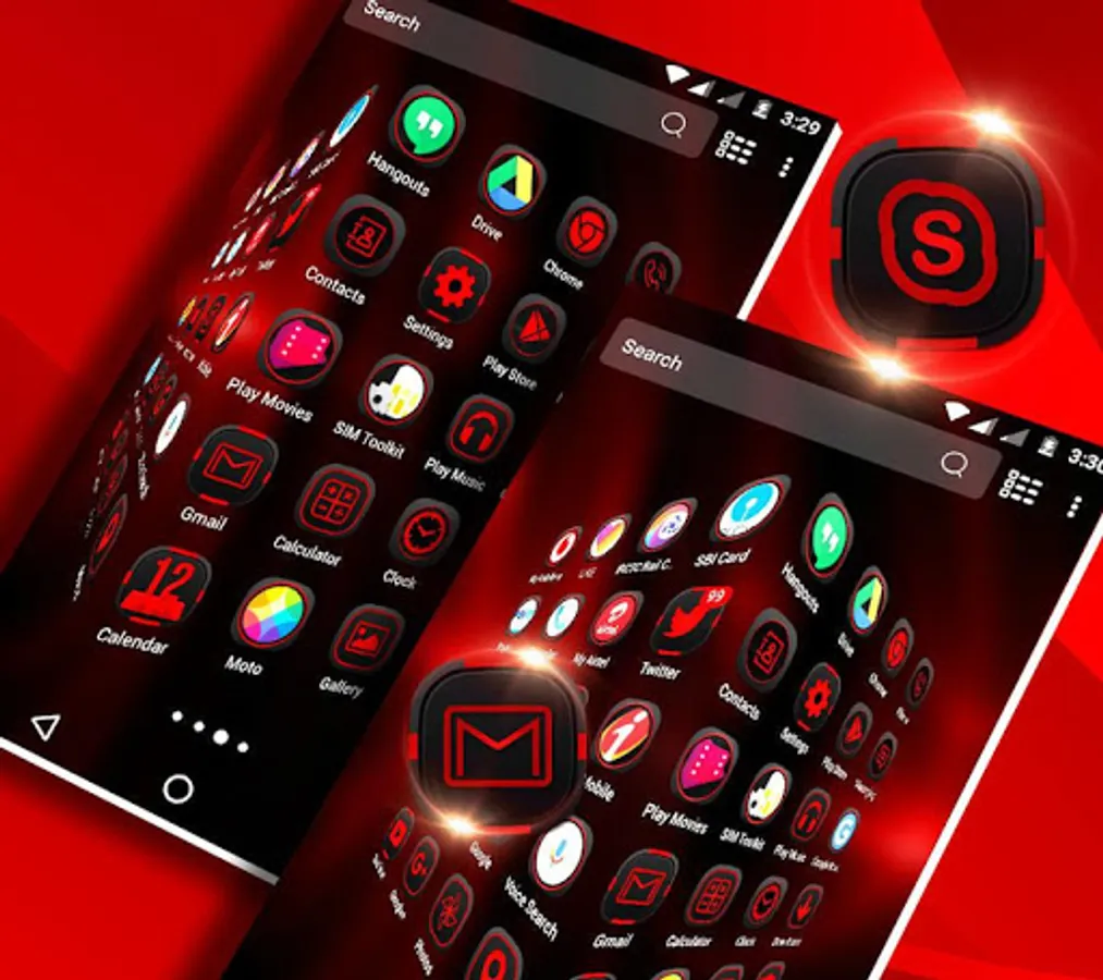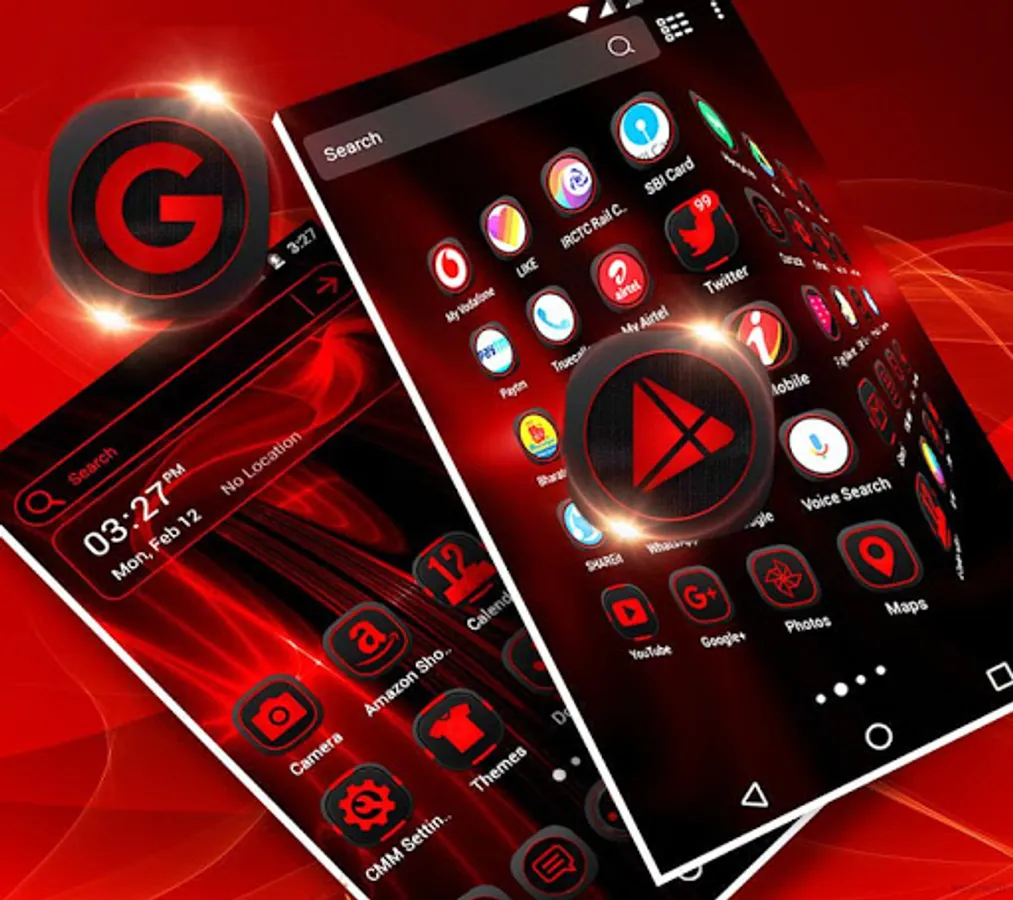 • Dark Red Theme included many HD customized Icons of popular apps, social app, System app icons.