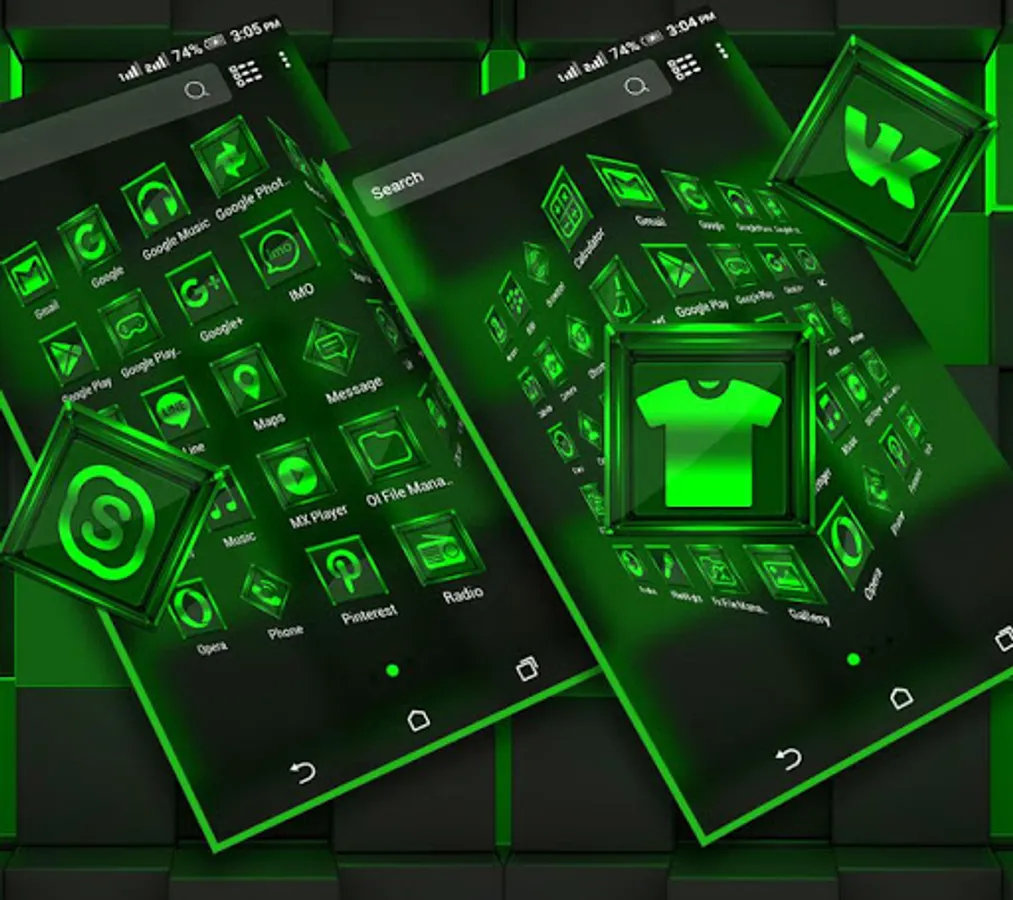 • Add Green Light Launcher Theme to your 3D Transition effects