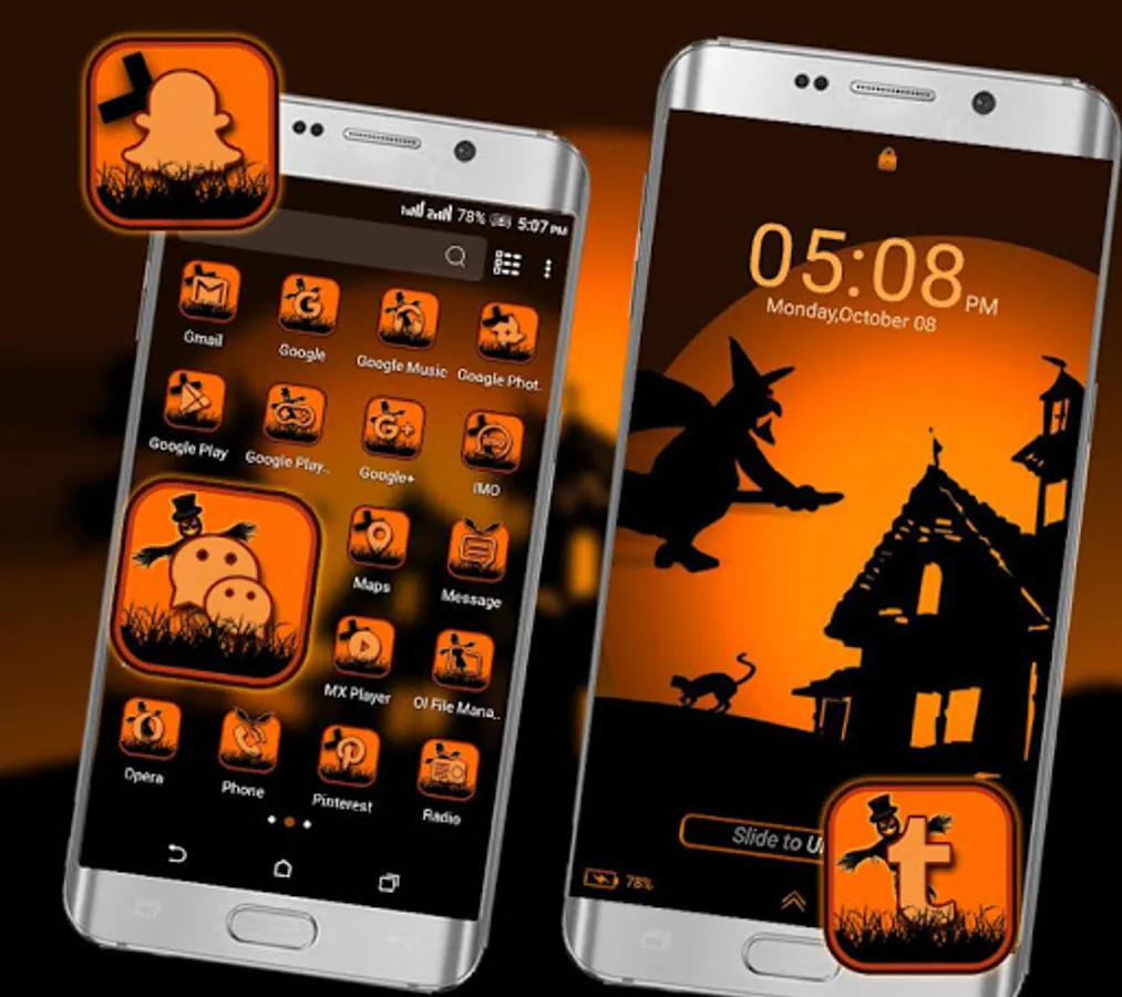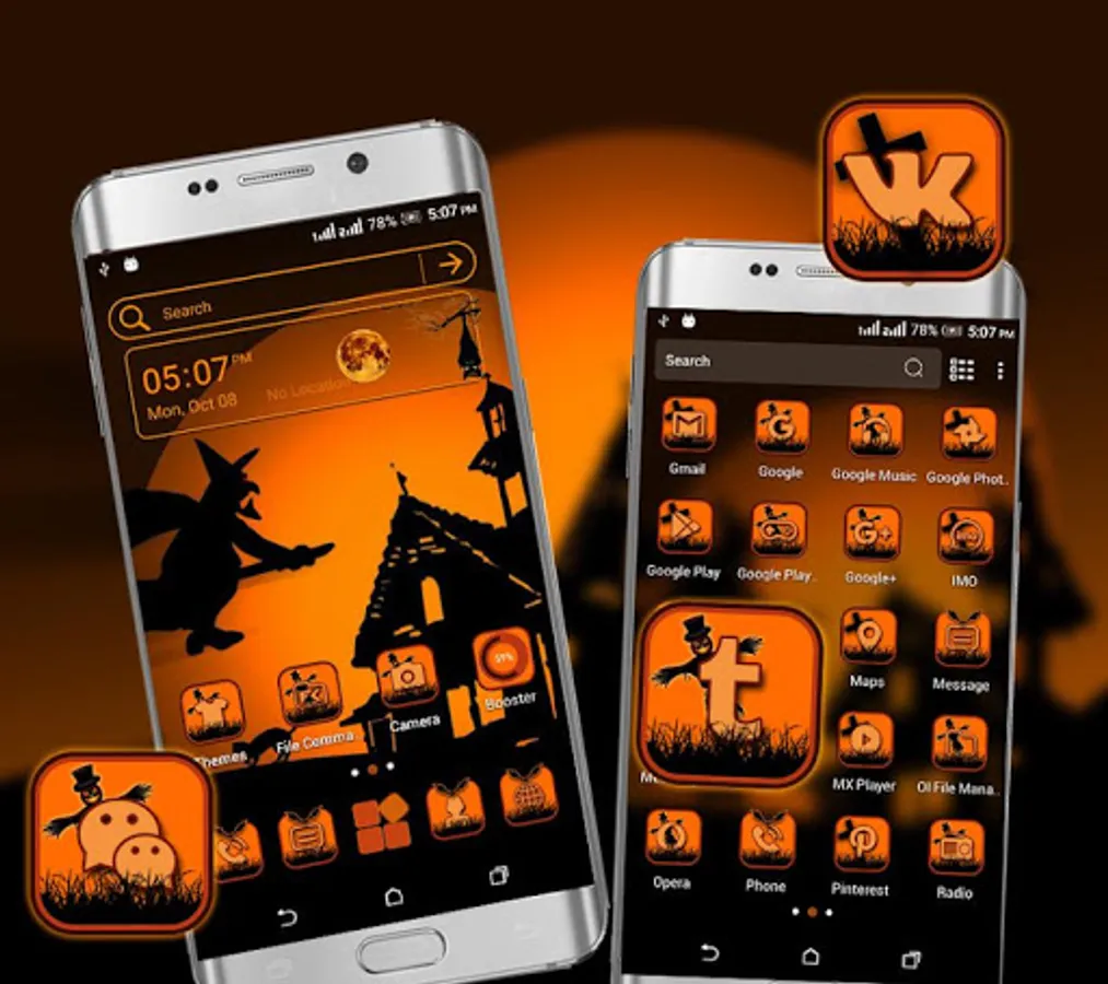 Come and download the Halloween Dark Night Launcher Theme for free and make your Samsung, Huawei, HTC and any other brands of Android mobile stylish.