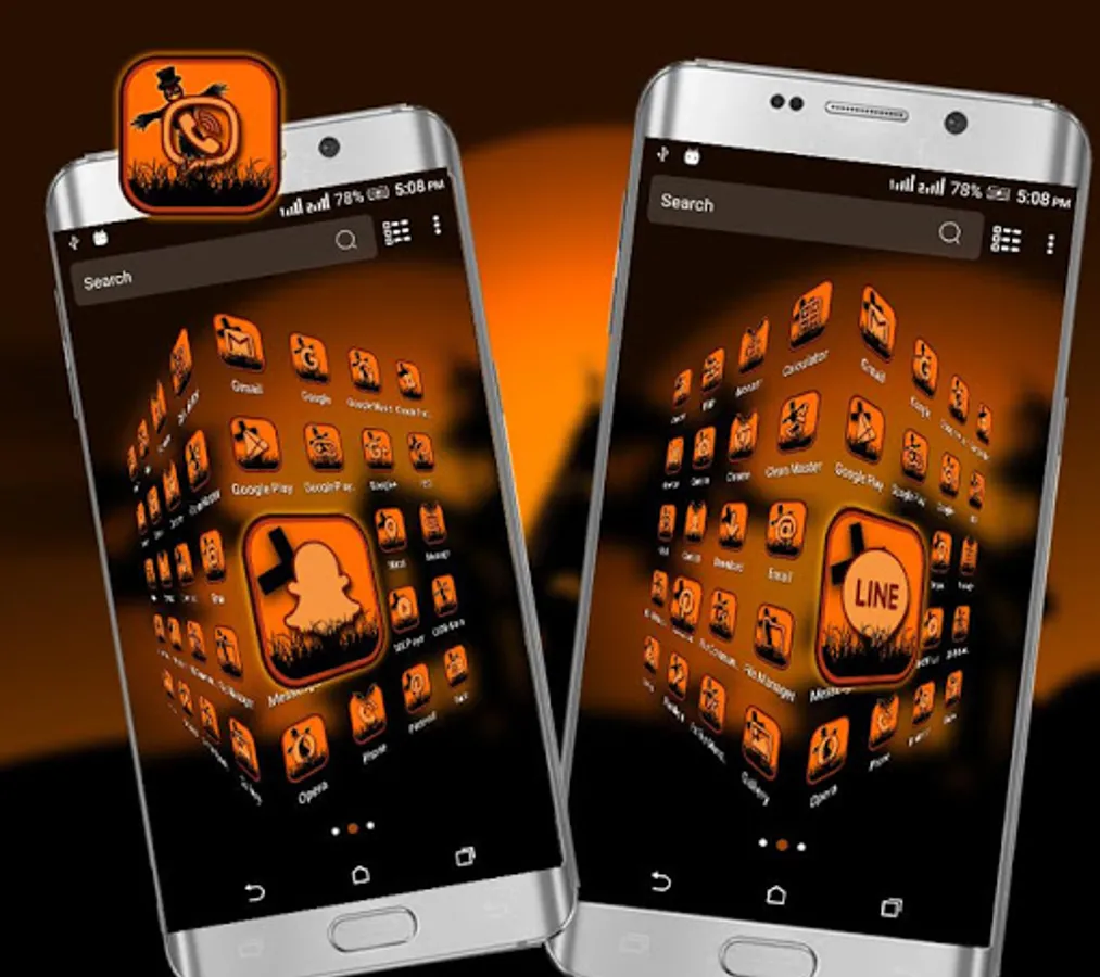 • Halloween Dark Night Theme included many HD customized Icons of popular apps, social app, System app icons.
