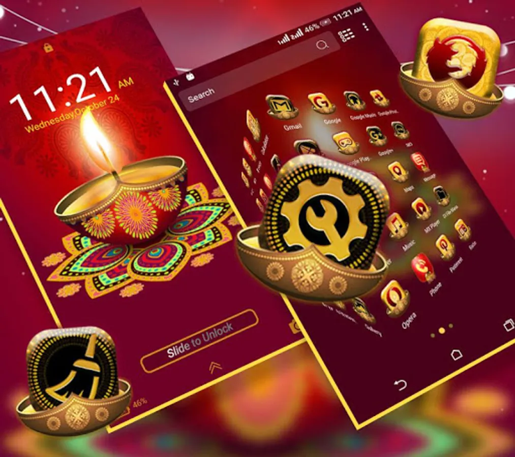 Come and download the Happy Diwali Launcher Theme for free and make your Samsung, Huawei, HTC and any other brands of Android mobile stylish.