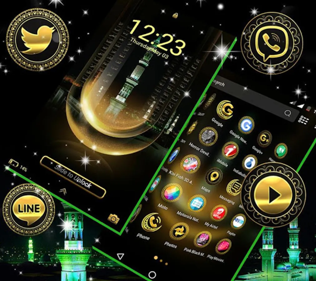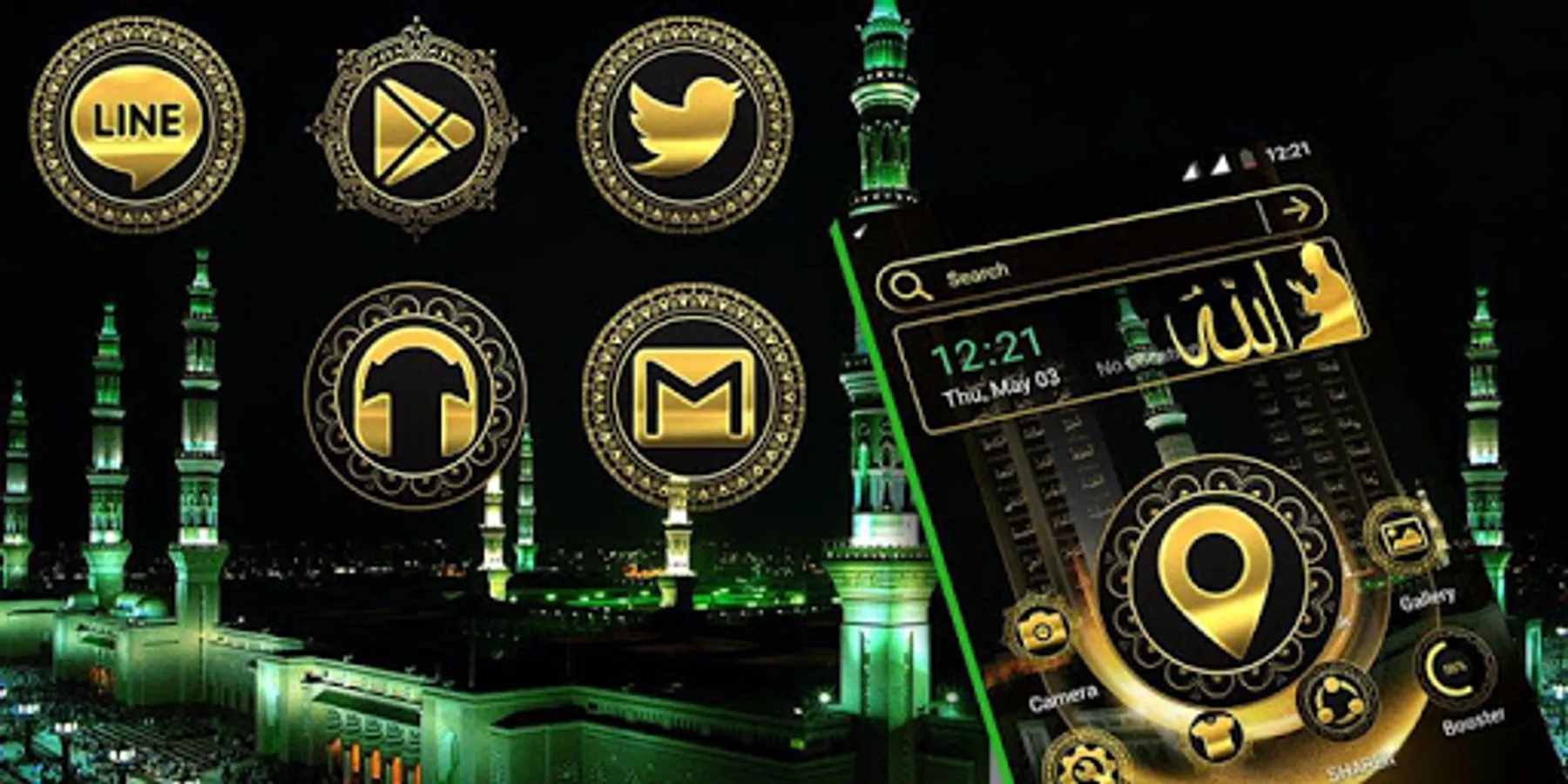Apply the Makka Madina Launcher Theme now, to make your phone organized. The original app icons, clock and weather theme of your phone will be replaced by the Makka Madina Launcher Theme.